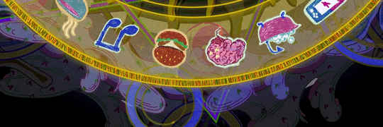 Events continuously approach from the horizon; each represents a task or choice in daily life.